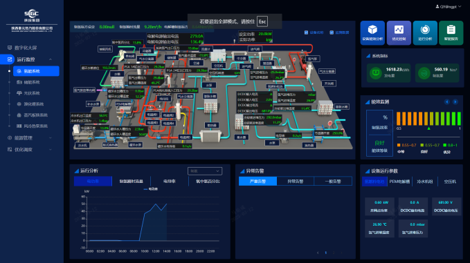 氢能系统监控:直观展示制氢电源系统的结构、用电分布、能流情况及电能质量,实时显示各监测点的运行参数,帮助用户精准掌握制氢电源的运行状况,提高系统的可靠性与安全性。