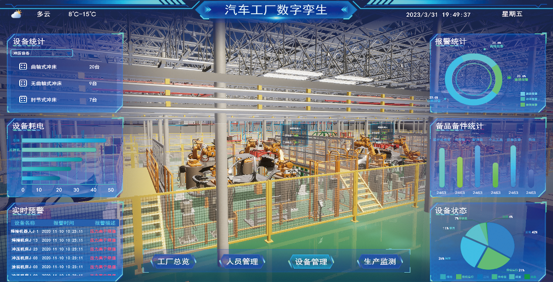 平台集3D、数字孪生建模技术,平台具备生产环境配套的设备监控,故障巡检,智能探测,